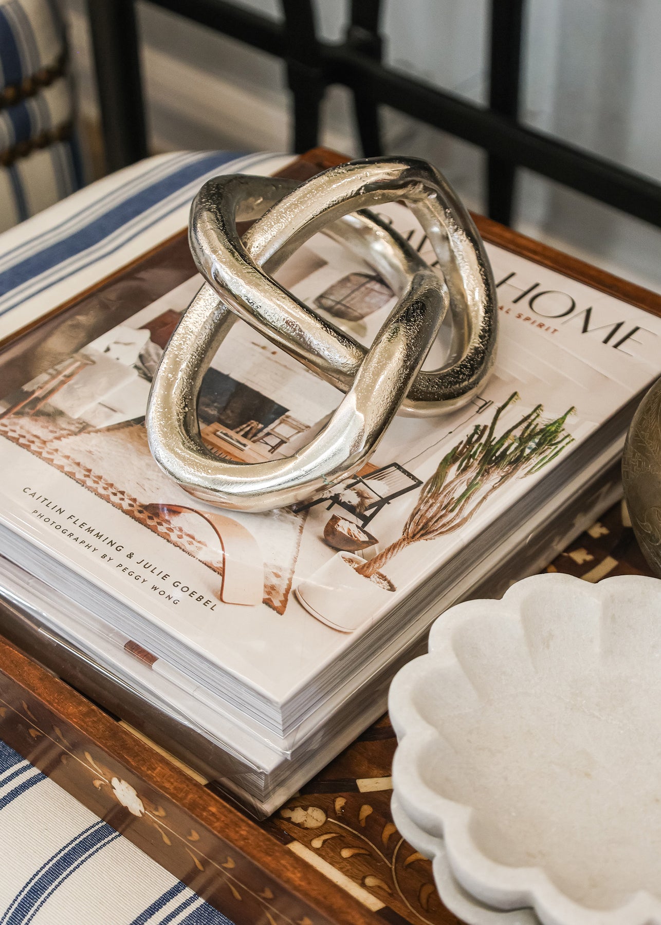 Its sleek and sculptural, our Nickel Knot Sculpture brings a contemporary touch to your home. Its fluid ribbon form catches the light beautifully, making it the perfect accent for a console, bookshelf, or coffee table. Style it alongside books or ceramics for a refined, designer look that feels effortlessly curated.
