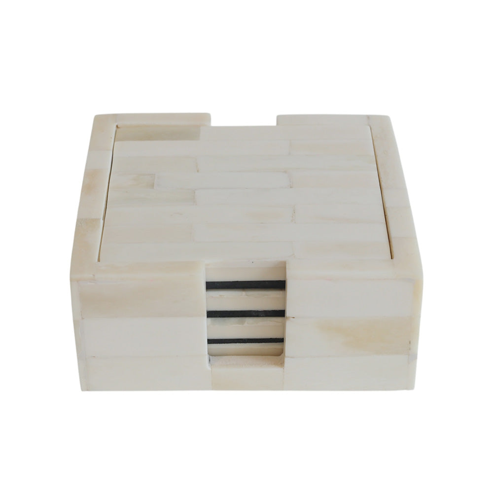 Serve your drinks in style while protecting your furniture with our timeless bone coasters. Designed to blend seamlessly into any interior, this set of four coasters adds a refined touch to everyday moments.