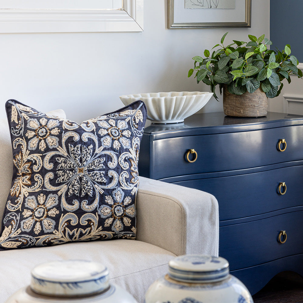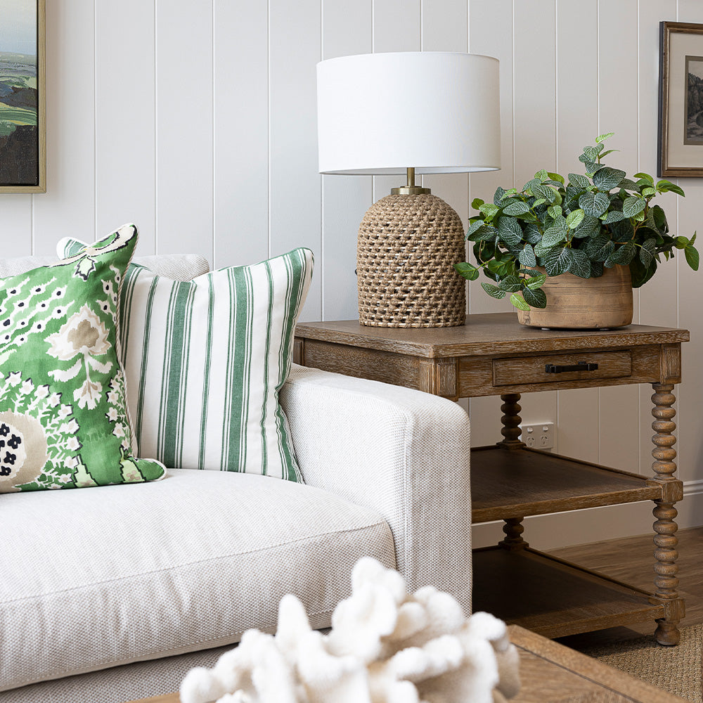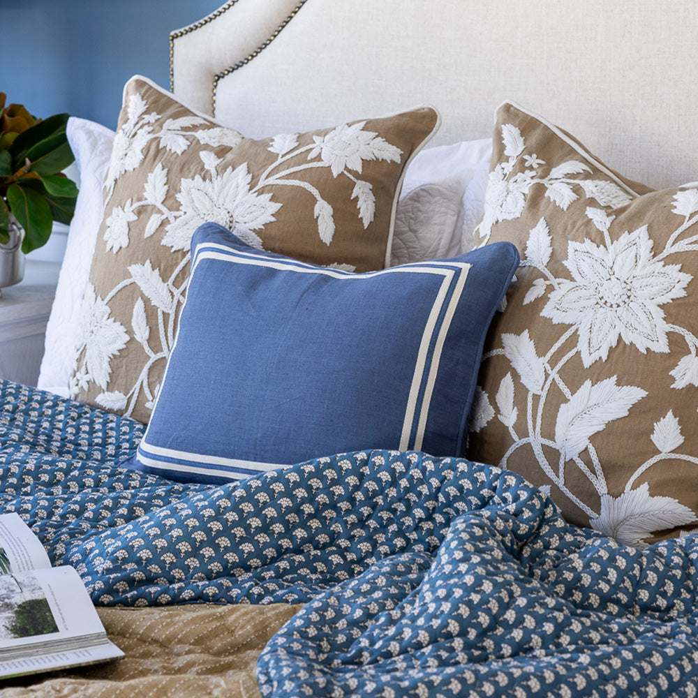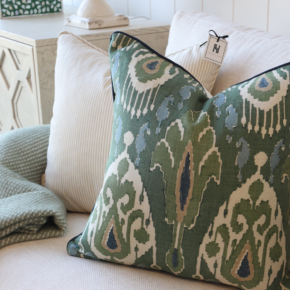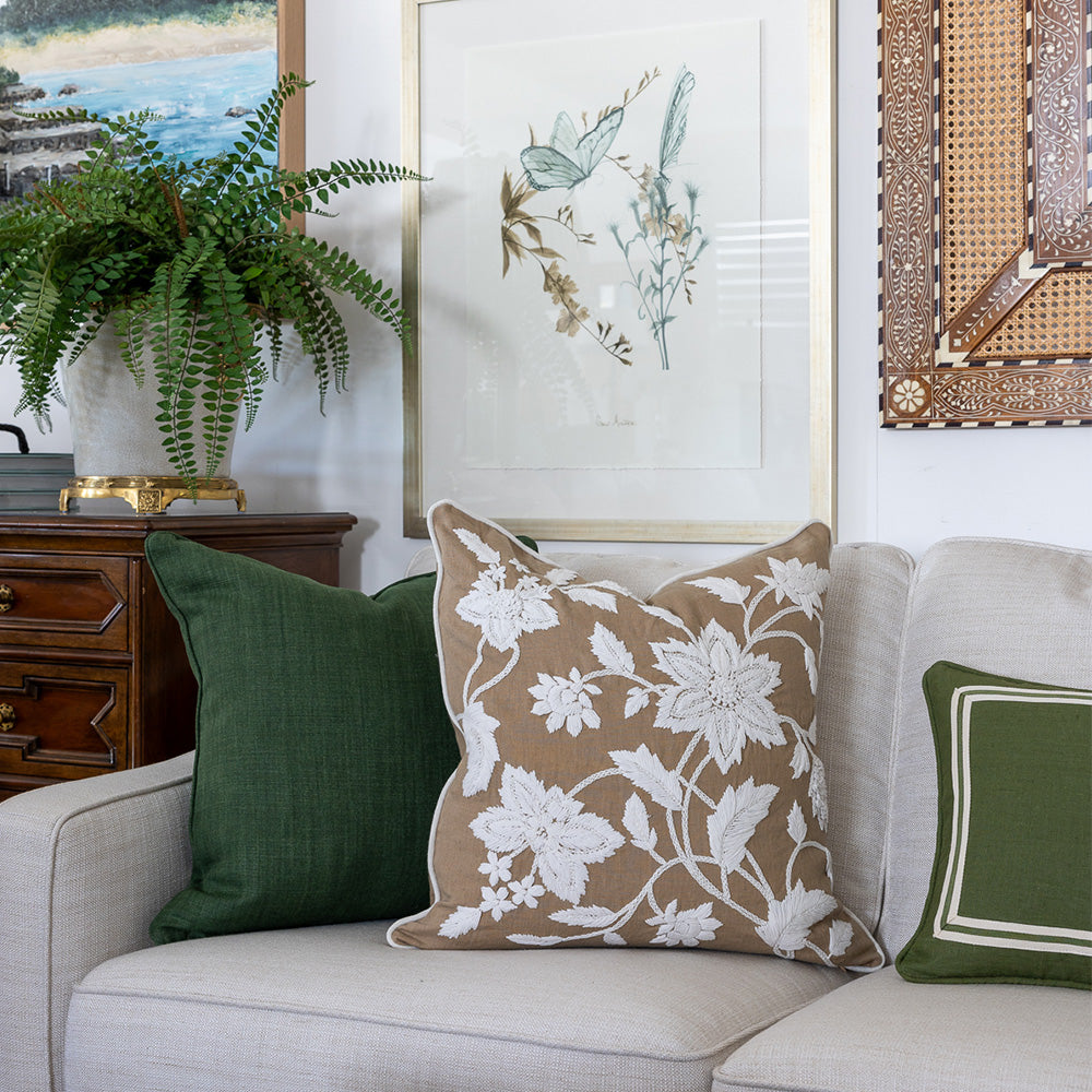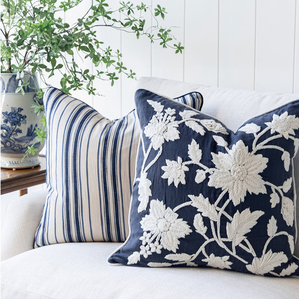 Expertly introduce a splash of colour and texture to a space by adding one - or many - of our stylish designer cushions. Offering a range of decorative cushions in a variety of colours, patterns, textures and sizes, you’re guaranteed to find the perfect pillow for you and your home. Compliment and complete your existing furnishings with the elegant addition of neutral textured cushions, or inject subtle pops of colour to a room with more statement pretty floral pieces. You can completely change the look and feel of a room with the mere addition of some high-quality throw cushions. To achieve a timeless Highgate House look, incorporate our elegant cushions into your interior design and layer your space with a soft accent colour. For stylish outdoor living, browse our range of durable outdoor cushions - all of them made from the best stain and fade resistant materials. All of our cushions are custom made in Australia with quality designer fabrics. Luxurious feather cushion inserts are included with each cushion. Some limited edition cushions may be price on application - please contact us for further details.