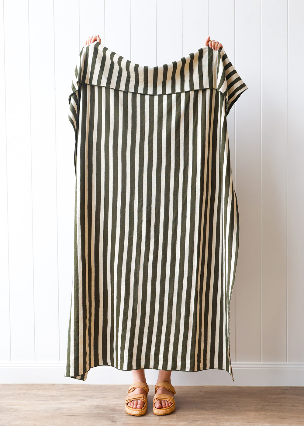 Striped Cotton Throw Olive Green